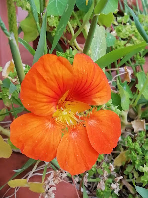 Quest'anno ho messo piselli, pomodori ciliegini, zucchine da fiore, una varietà di girasoli (nata da sola dai semi che compro per gli uccellini selvatici per sfamarli in inverno), insalata da taglio, cipolline, agli, erba cipollina, prezzemolo, basilico, shiso verde e rosso, rucola, rosmarino, salvia, menta, nasturzio, aneto e a rotazione altre piante annuali.